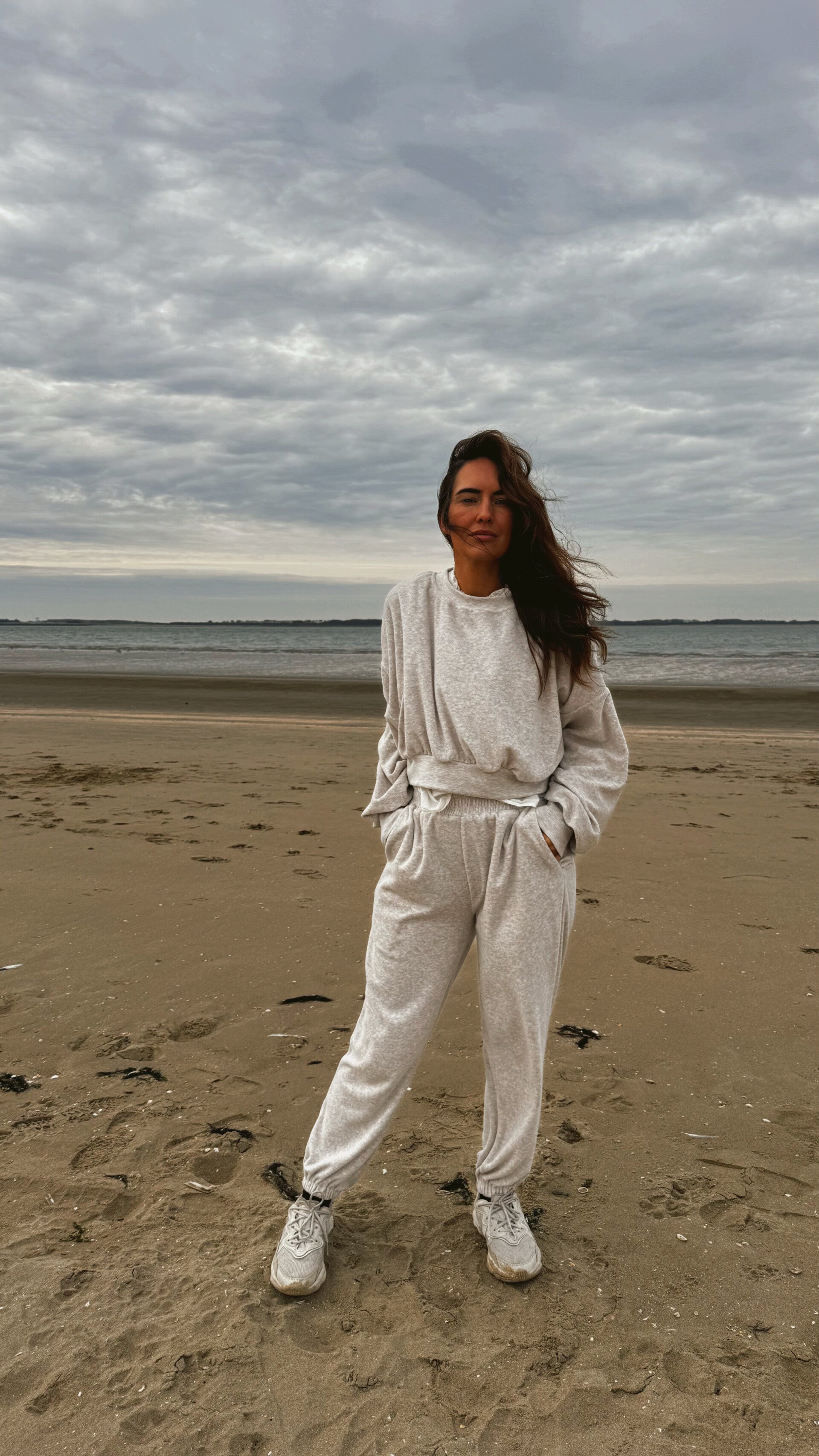 Zacht, gemêleerd en licht als zandduinen in de zon. De Dune stof voelt cozy door de badstofstructuur en geeft je dat nonchalante loungegevoel dat toch verzorgd oogt. Combineer de set met witte sneakers voor een frisse look, met Uggs voor ultiem comfort of slippers voor easygoing vibes. Dune is je perfecte metgezel van vroege ochtendkoffie tot late night chill.