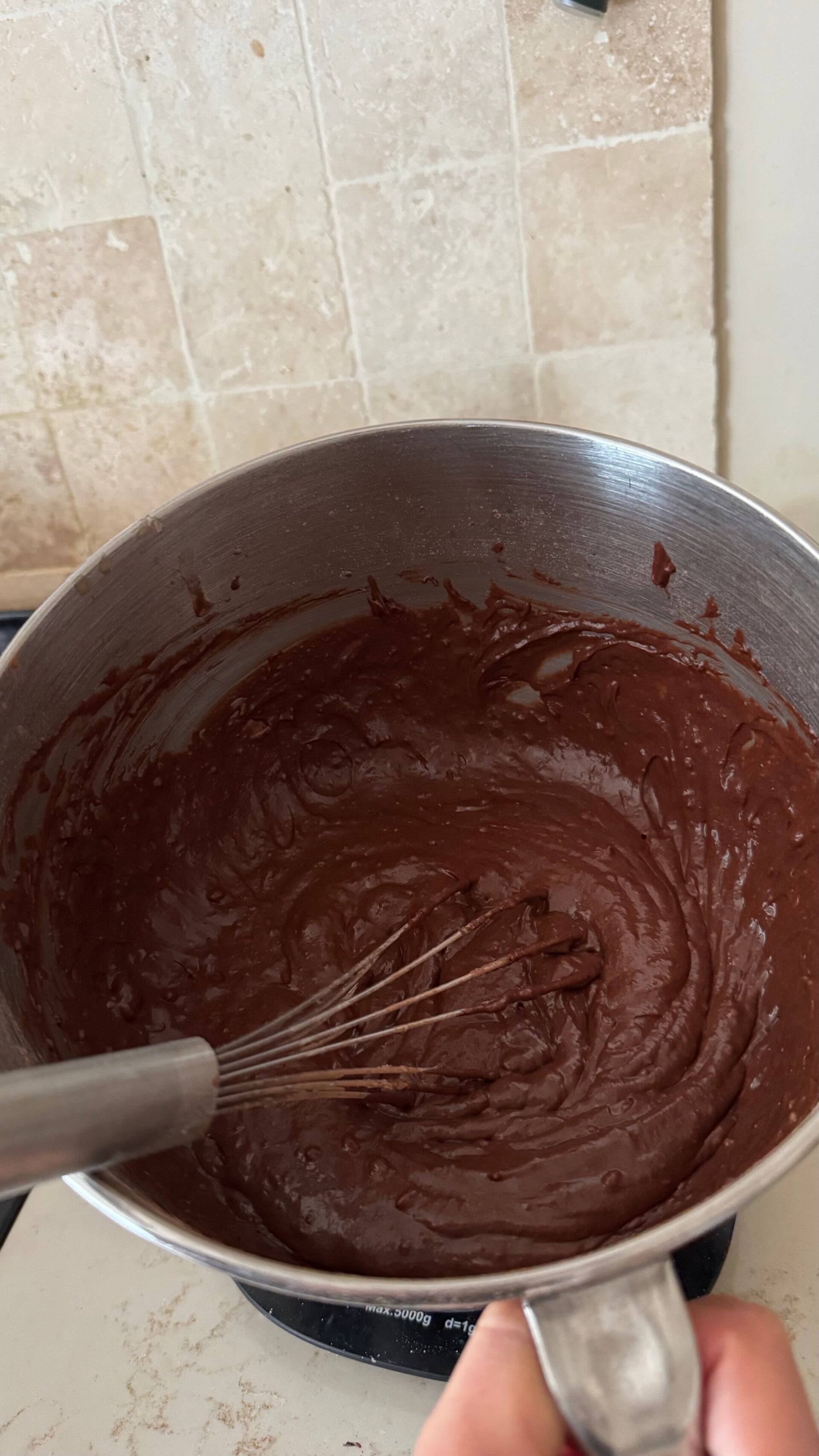 - Roer de hete koffie er langzaam door tot een egaal beslag.